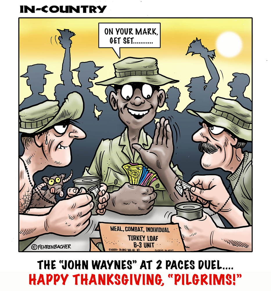 Phil enlisted in the Army in 1965 where he served for years in Vietnam.  He became a graphic designer and has worked for the state of Oregon for 26 years.  He retired in 2003 and started the Cartoon "In-Country".  The cartoons reflect his experiences during his tour of duty in South Vietnam.